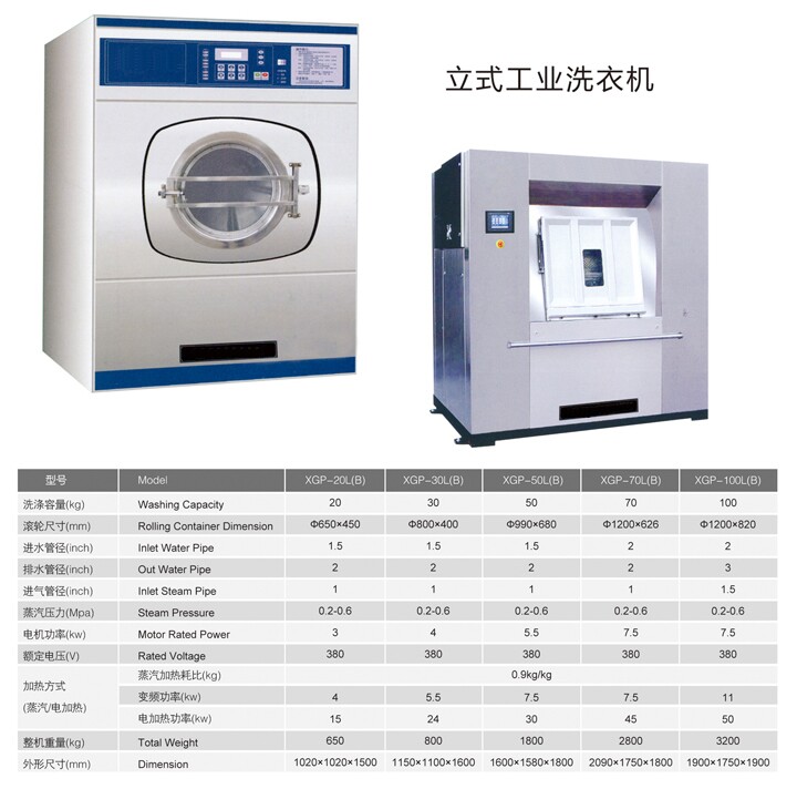 XGP系列立式工業(yè)洗衣機(jī)是在消化國內(nèi)外同類產(chǎn)品技術(shù)的基礎(chǔ)上,研制開發(fā)的新一代洗滌機(jī)械,適用于洗滌各種棉織、毛紡、麻類、化纖混紡等衣物織品,對工礦、學(xué)校、賓館、旅館、醫(yī)院等都具有廣泛用途,是選擇減輕勞動(dòng)強(qiáng)度,提高工作效率,降低能耗的理想設(shè)備。 |